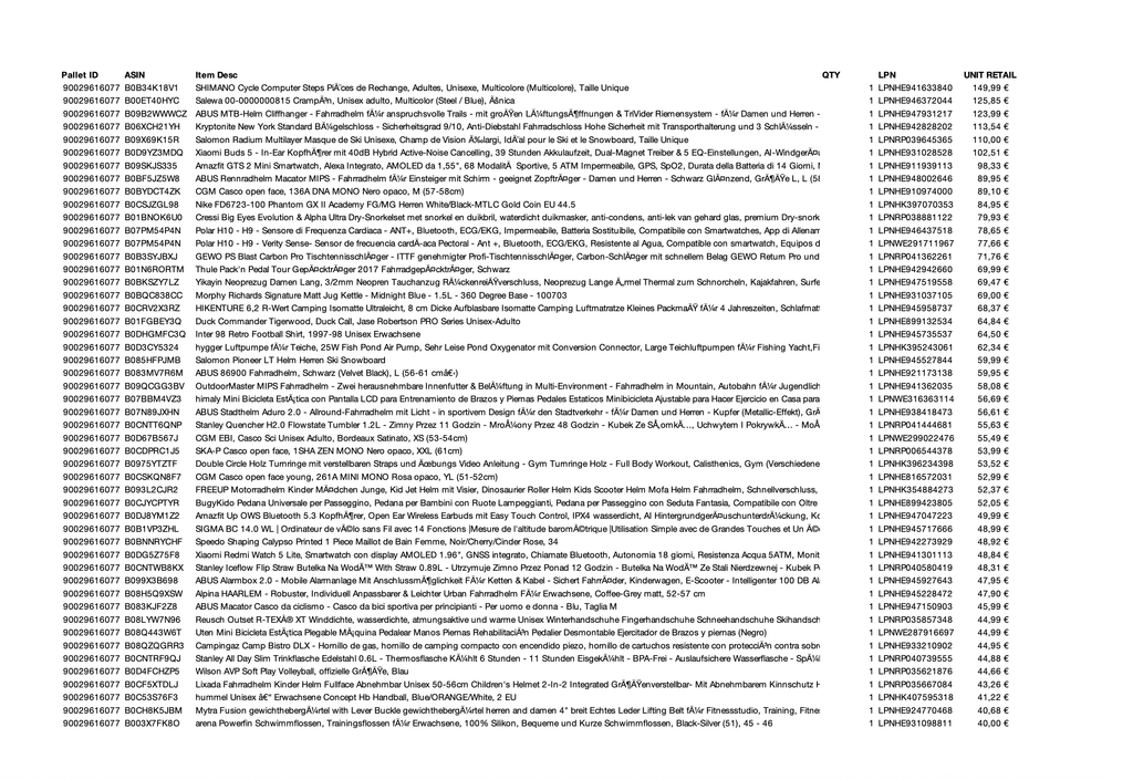 - Transparenz durch Inhaltslisten – Jede Palette wird mit einer detaillierten Inhaltsliste geliefert, damit Sie genau wissen, was Sie erhalten.