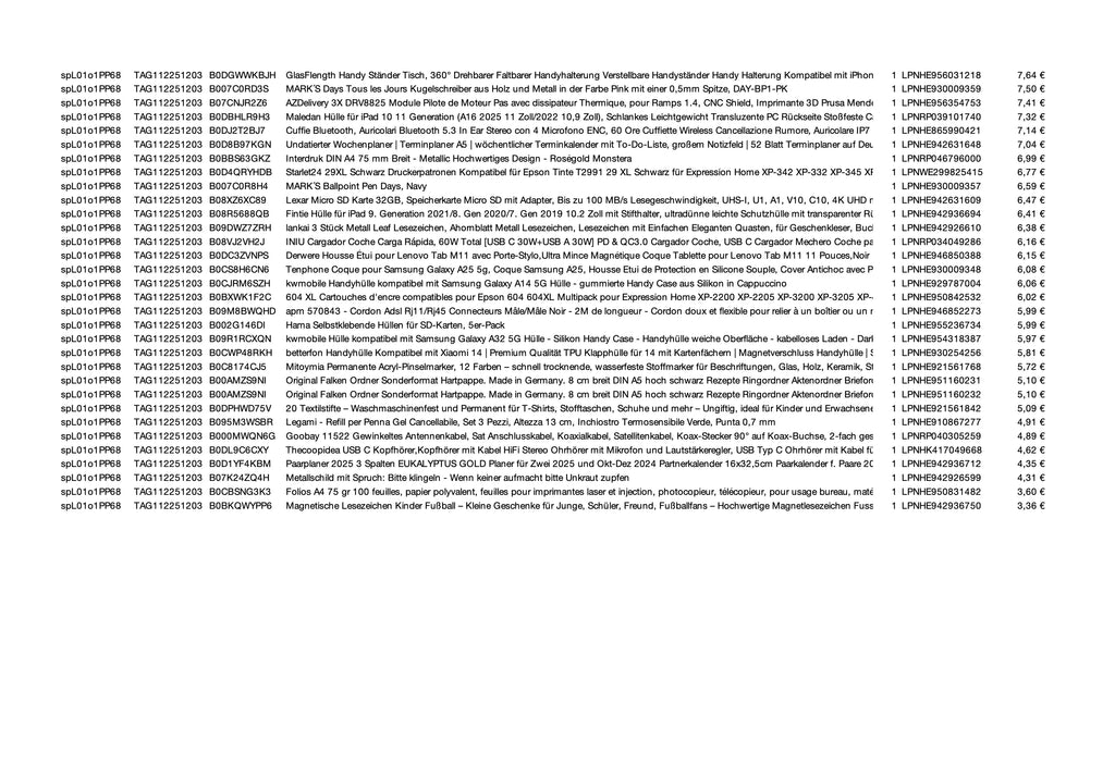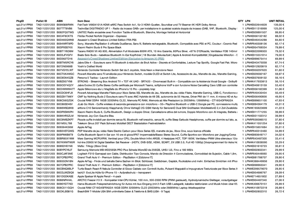 - Transparenz durch Inhaltslisten – Jede Palette & Kiste wird mit einer detaillierten Inhaltsliste geliefert, damit Sie genau wissen, was Sie erhalten.