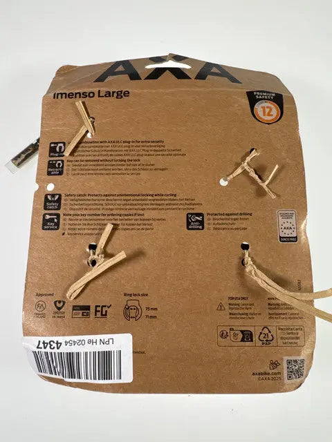 Das AXA Imenso Large Rahmenschloss (70 mm, Security 12) ist ein robustes Rahmenschloss für Fahrräder und eignet sich ideal für den täglichen Einsatz in der Stadt oder auf dem Weg zur Arbeit. Als Qualitätsprodukt von AXA steht es für zuverlässige Verarbeitung und eine komfortable Handhabung beim schnellen Abschließen. Die 70-mm-Ausführung bietet eine passende Lösung für viele Rahmen- und Reifenbreiten und lässt sich unkompliziert in den Alltag integrieren. Mit der Security-12-Einstufung ist es auf eine solide Basissicherung ausgelegt – ideal als Alltags- oder Zweitschloss. Besonders praktisch: Das Schloss ist jederzeit am Fahrrad verfügbar und sorgt so für schnelle Sicherheit beim kurzen Stopp.
